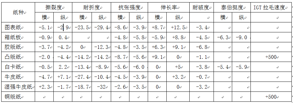 溫度變化對常規(guī)紙張的性能影響見下表